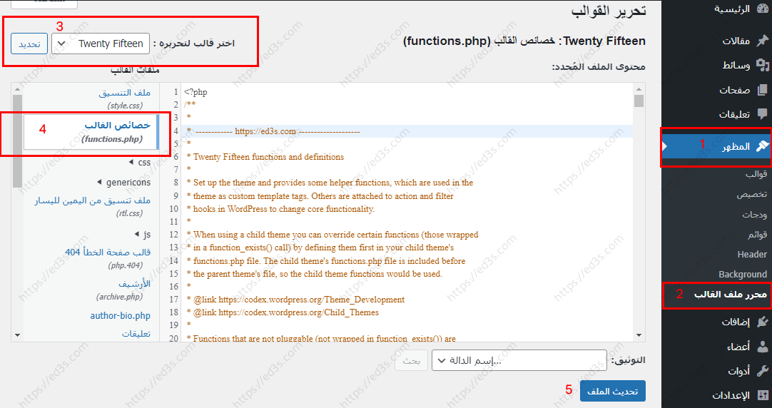 الطريقة الثانية : بواسطة التعديل على ملف functions.php
