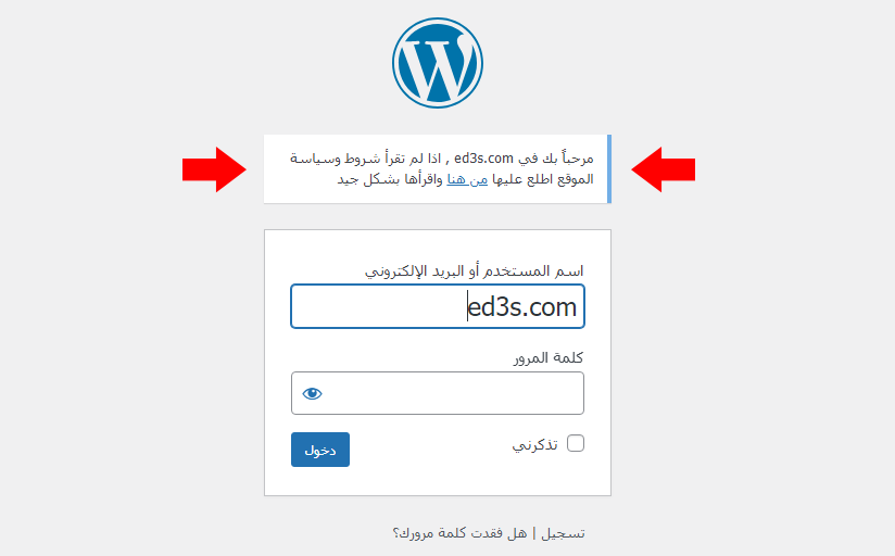 اضافة رسالة مخصصة الى شاشة تسجيل الدخول في الووردبريس